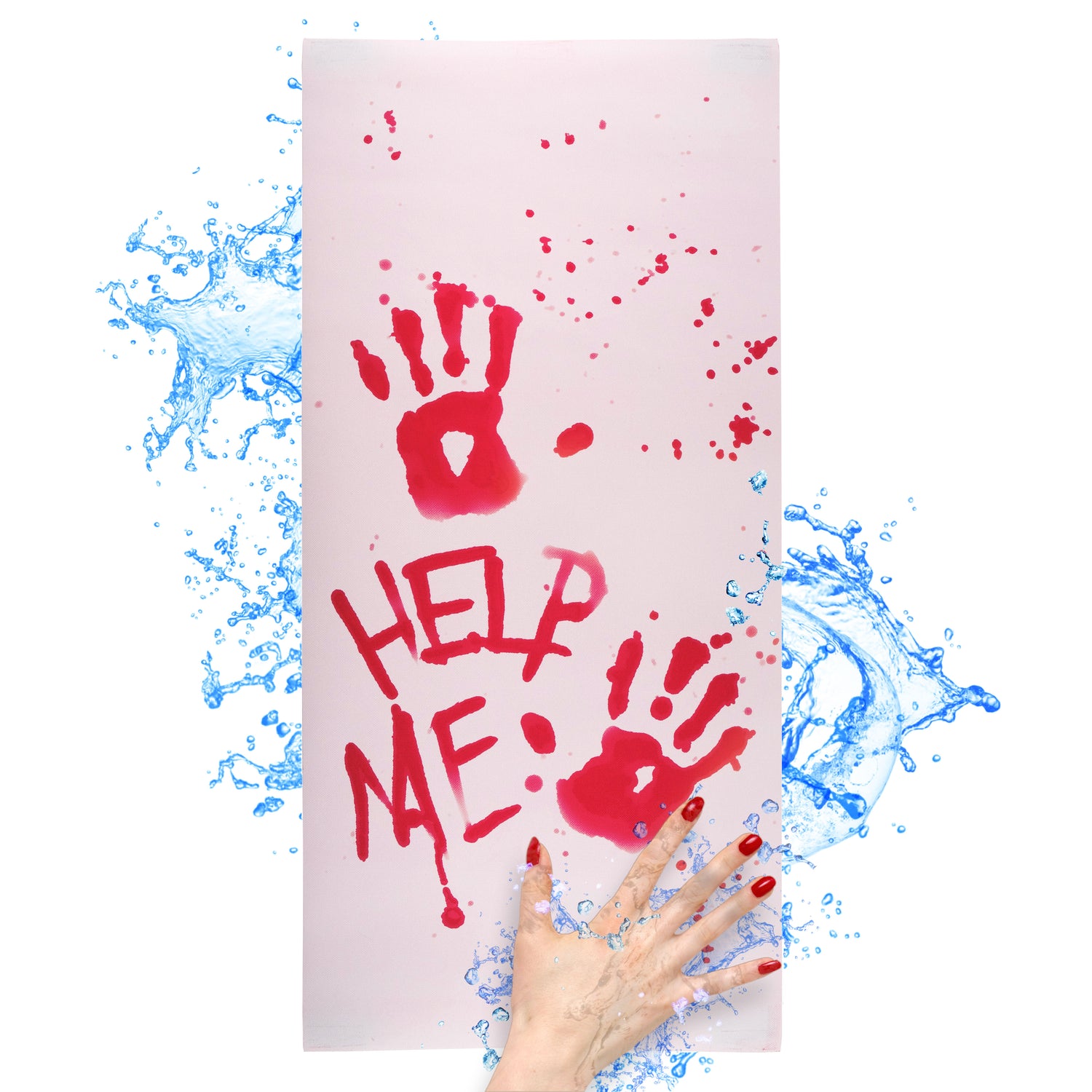 Prank anyone in your home with our "blood" appearing bath sheet! The magic red color is only activated by water, so place this bath mat in your bathroom and wait for the reaction.
